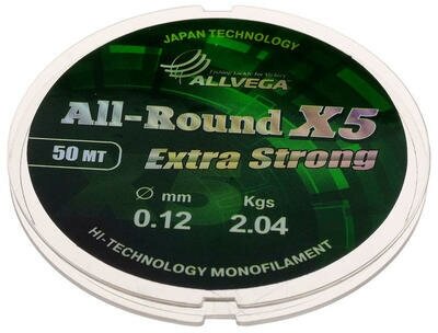 Леска монофильная ALLVEGA "ALL-ROUND X5" 0.12мм (50м) (2,04кг) (прозрачная)
