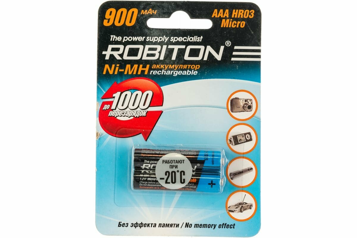 Ni-Mh аккумуляторы ROBITON 900MHAAA-2 BL-2 8796, 1.2В, 900мАч, размер ААА (HR03), металлогидридные, 2шт