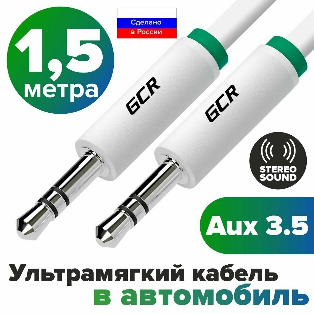 Аудио кабель AUX mini jack 3.5мм GCR 1.5м белый эко материалы морозостойкий аудиокабель автомобильный 3.5 мм кабель в машину