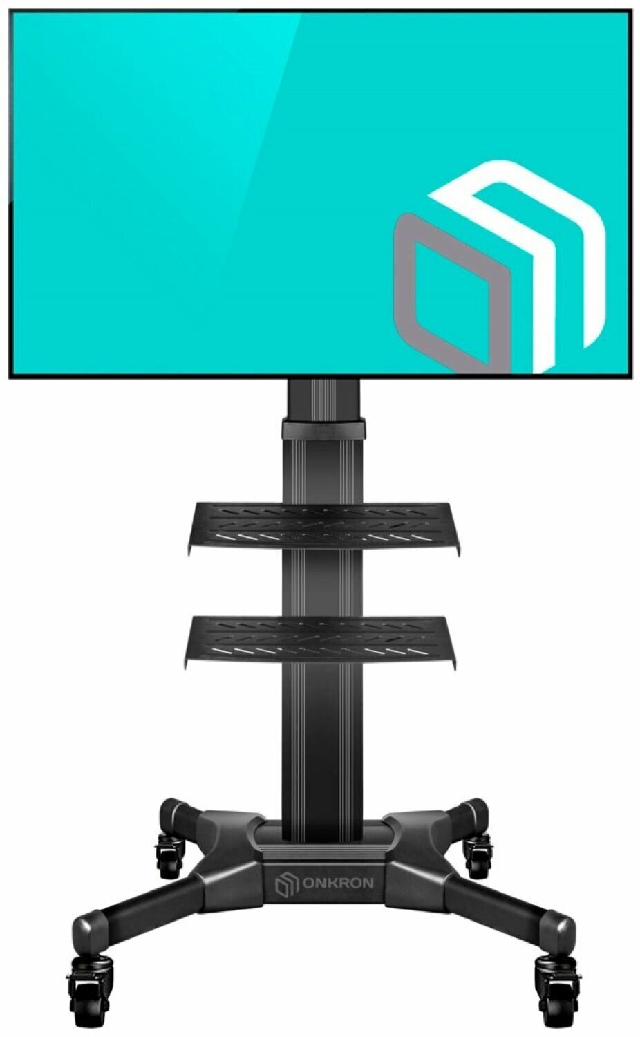 Мобильная стойка ONKRON TS2551 на 1 ТВ/ 32-55 от 200х200 до 400х600 кабель-канал регулировка полки по высоте колесики с блокировкой черная