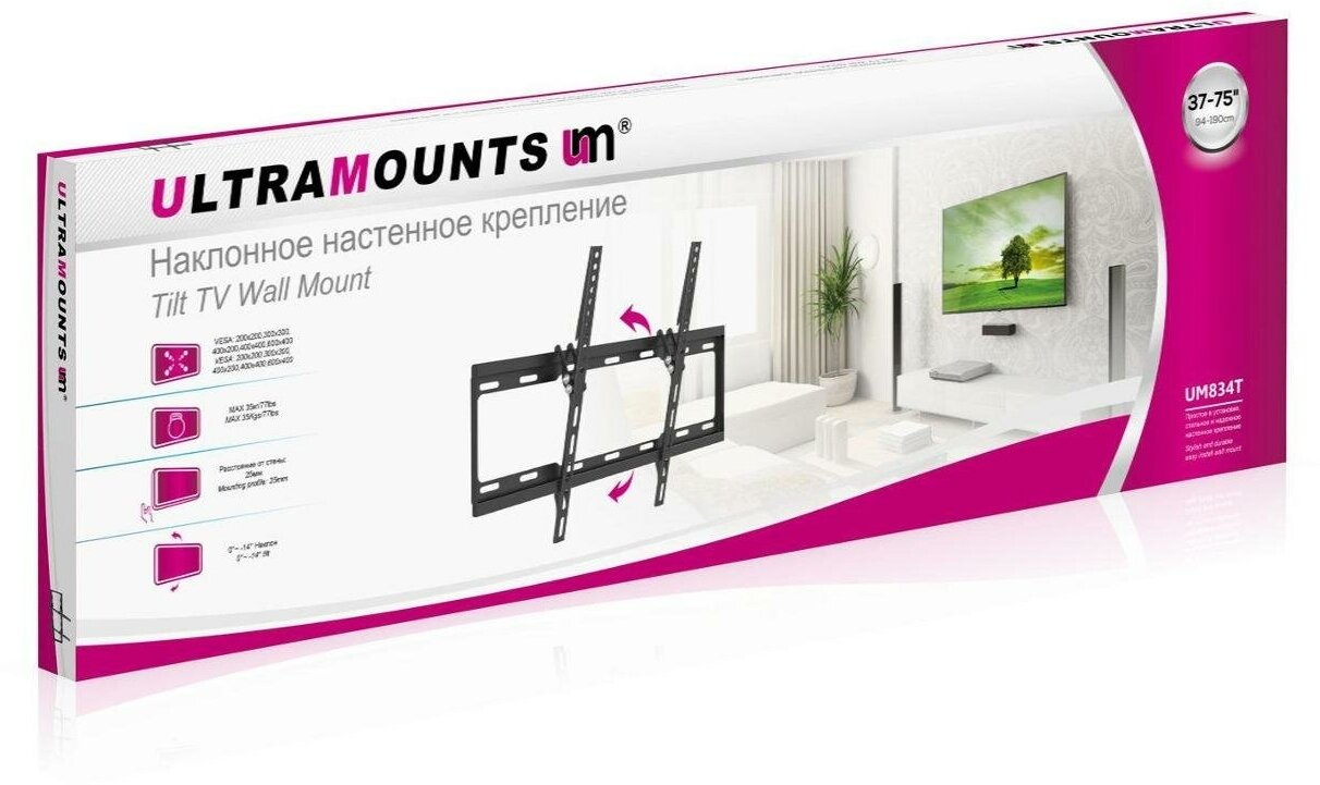 Кронштейн для телевизора ULTRAMOUNTS UM 834T, 37-75", настенный, наклон, черный