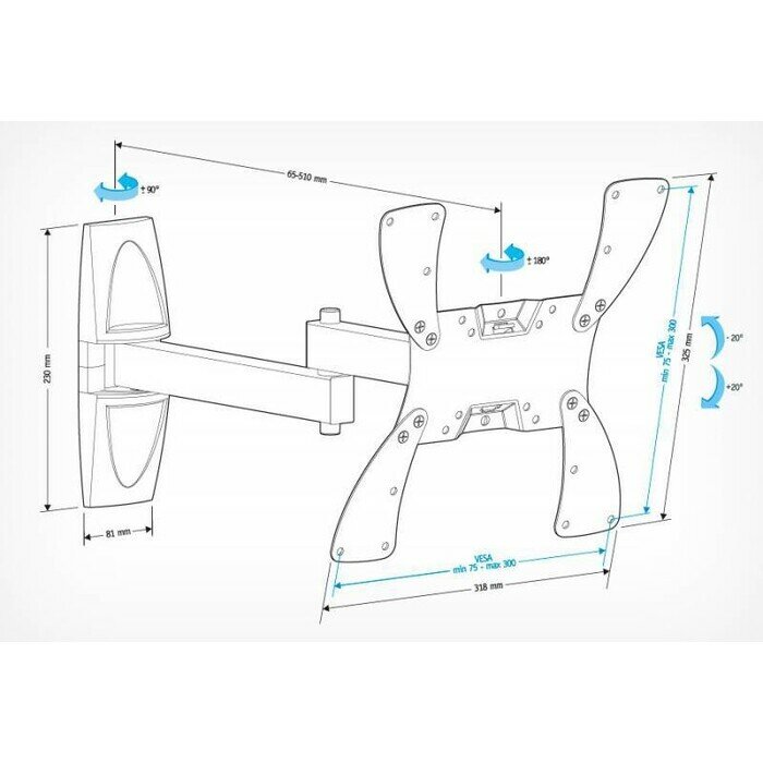 | Плюсы: | Один из немногих с размером vesa 300*300 - для ТВ Xiaomi подошел в самый раз, т.к. там нижние отверстия расположены близко к краю, а с этим кронштейном ничего не торчит снизу ) |