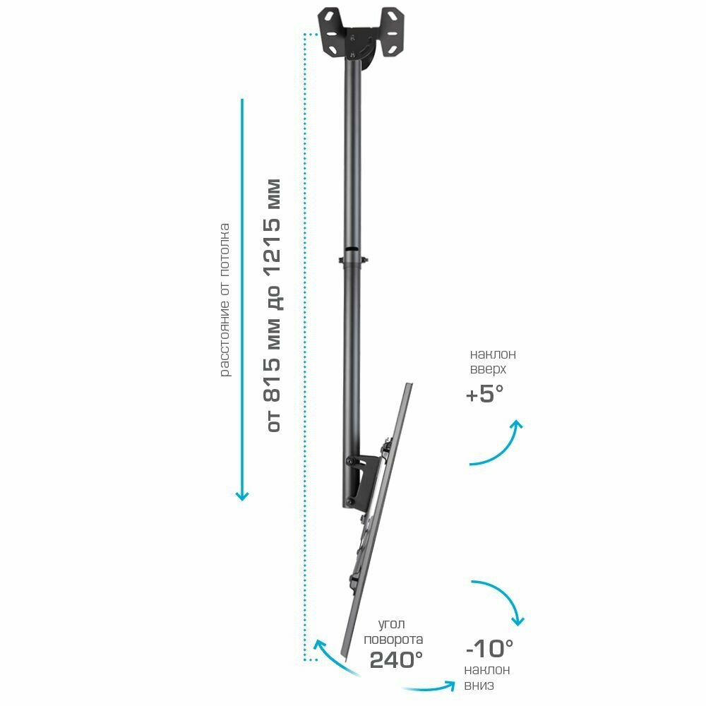 Кронштейн для телевизора Kromax COBRA-4 черный 15"-75" максимум: 65кг потолочный поворот и наклон