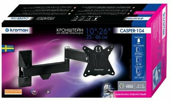 Ниже Вы можете прочитать отзывы на Кронштейн для телевизора Kromax CASPER-104 черный 10"-32" макс.25кг настенный поворот и наклон, ознакомится с подробными характеристиками, посмотреть интересные обзоры и фотографии на Кронштейн для телевизора Kromax CASPER-104 черный 10"-32" макс.25кг настенный поворот и наклон.