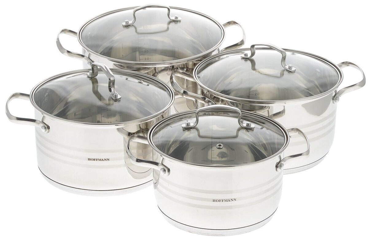 Набор кастрюль "Hoffmann" HM 5108 с крышками, цвет: серебристый, 8 предметов.