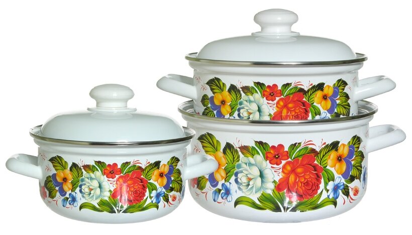 Набор кастрюль "Лысьвенские эмали" "Ласковый май", эмалированная сталь 1,5л.; 2л.; 3л.