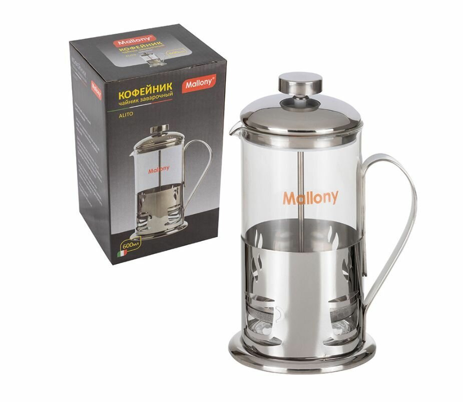 Чайник/кофейник (френч-пресс) ALITO, 600мл, нерж сталь/стекло 950150 Mallony