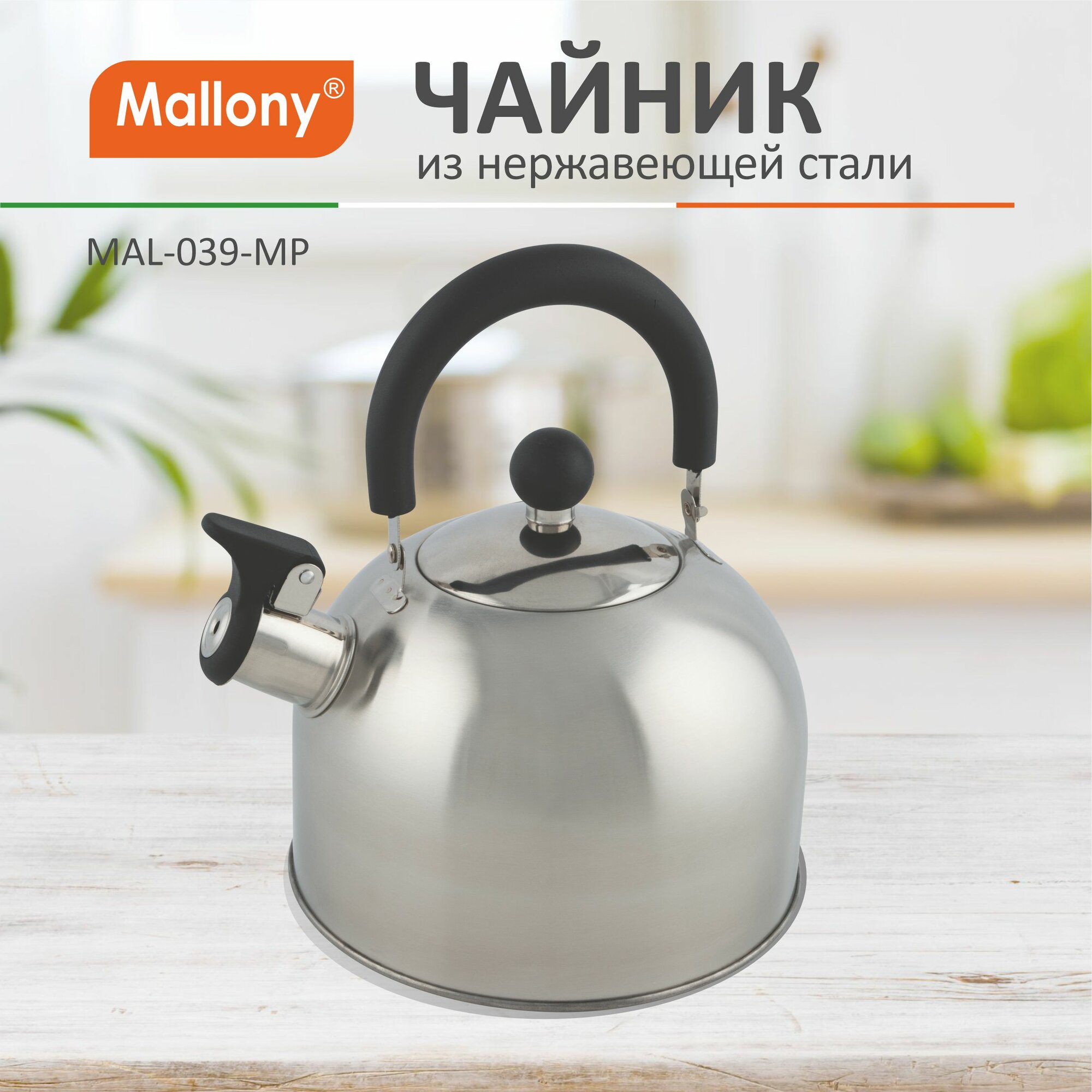 Чайник со свистком Mallony MAL-039-MP, 2,3 л, нержавеющая сталь