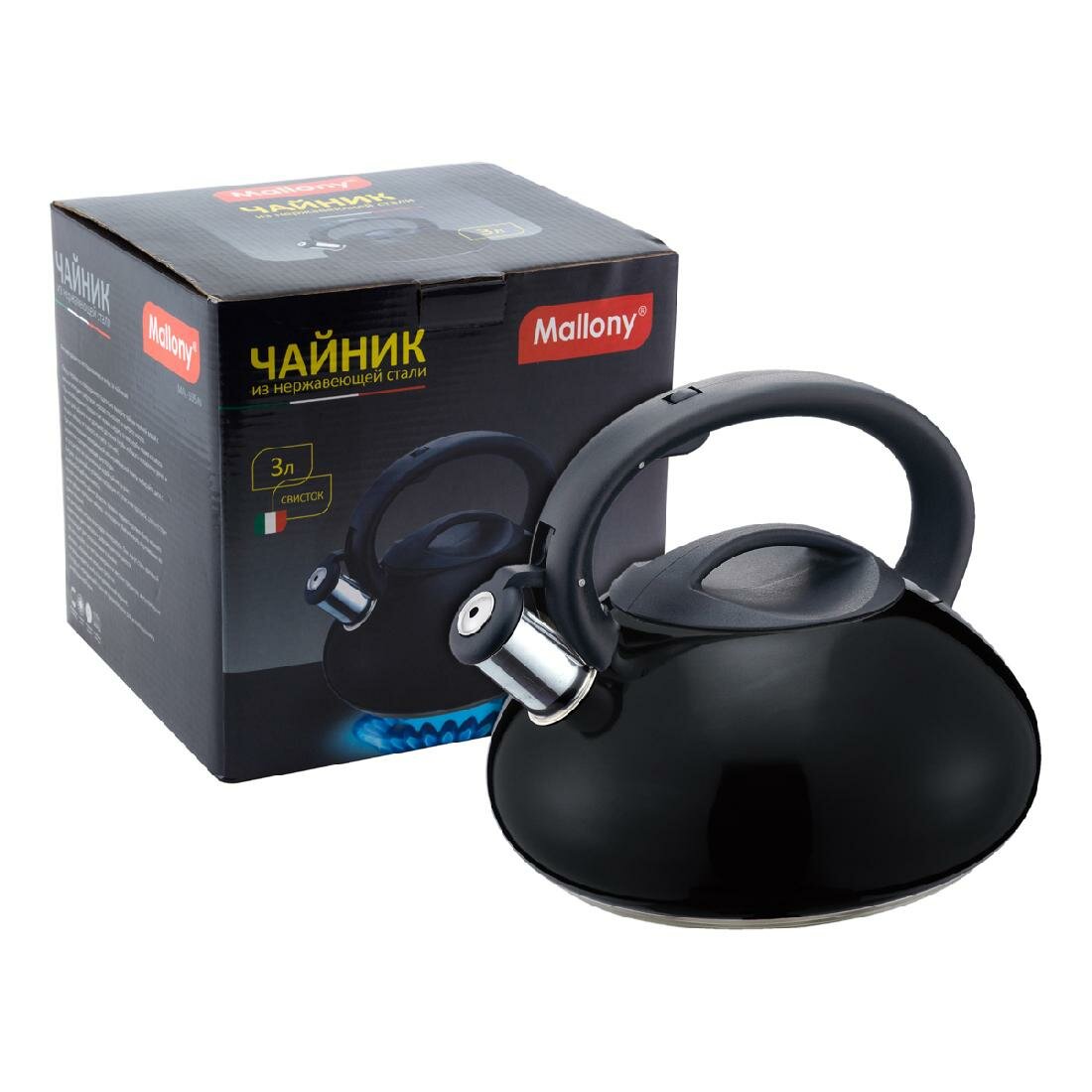 Купить Чайник со свистком Mallony MAL-105-N 3 л, черный, нержавеющая сталь