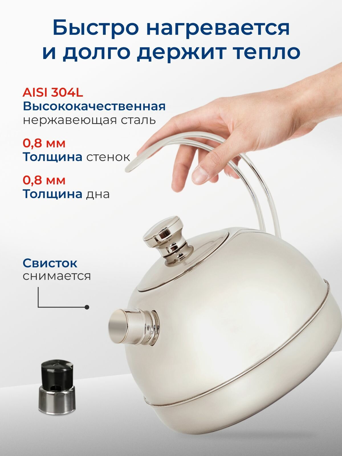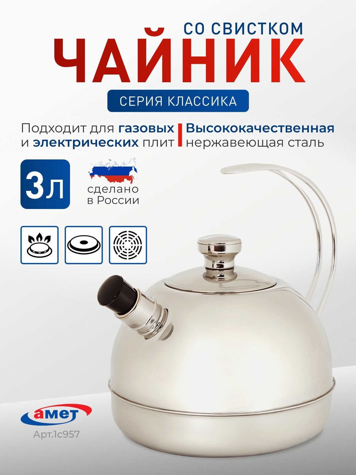 Чайник Амет "Классика" 3 л с прутковой ручкой и свистком интересное: