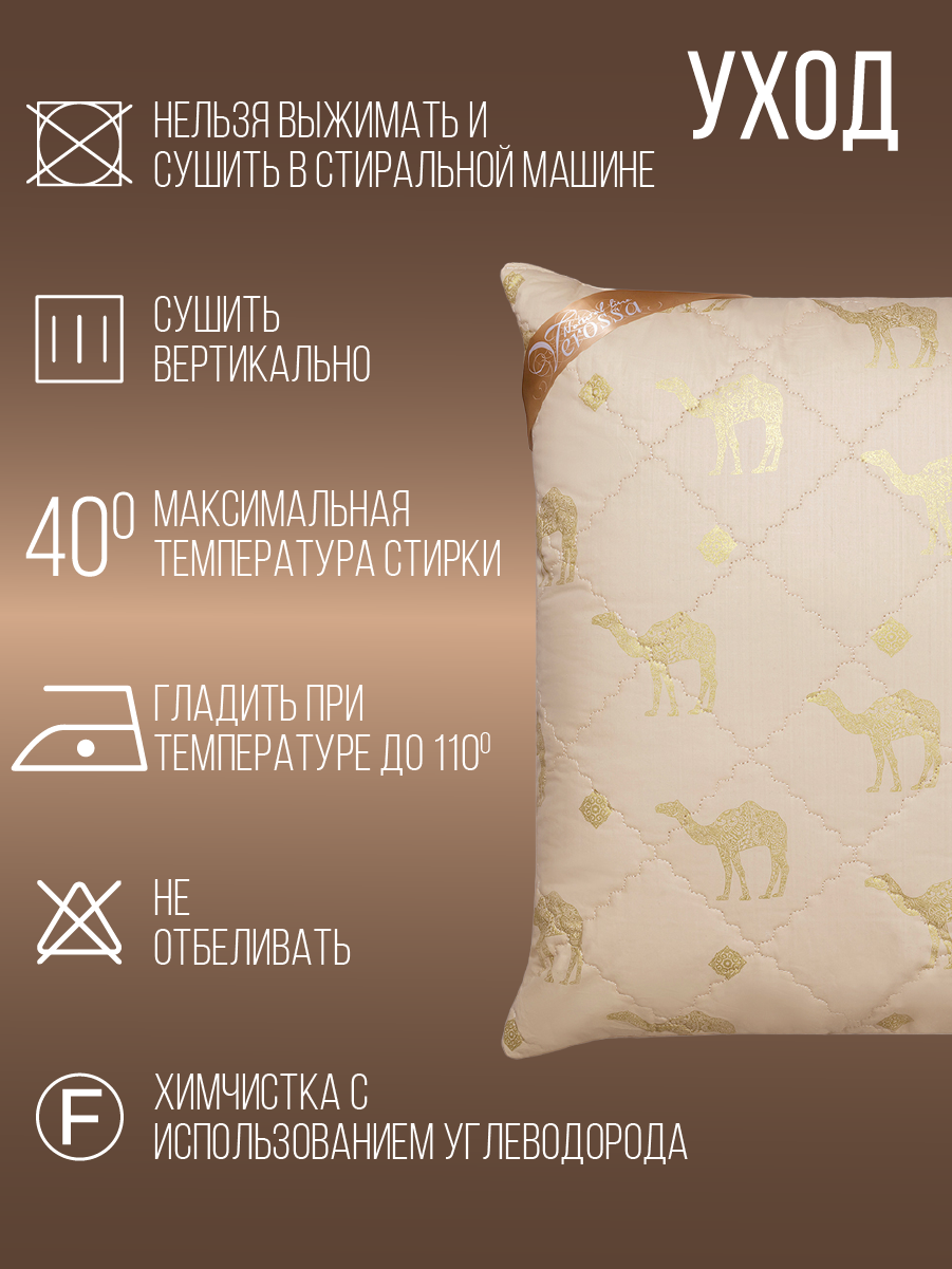 Подушка для сна удобная VEROSSA, наполнитель верблюжий пух, размер 70x70, материал 100% хлопок