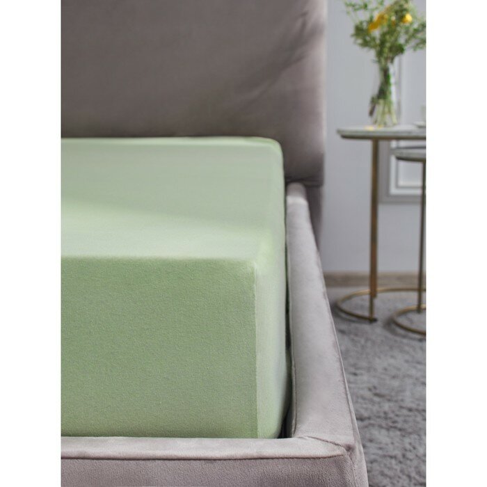 Простыня на резинке трикотажная Sage, без рисунка, зеленый размер 90 х 200