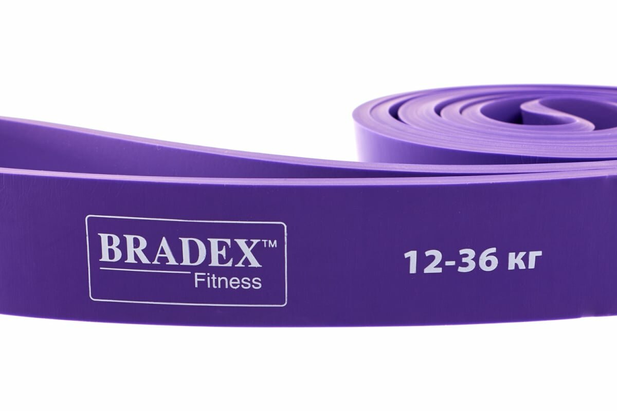 Резинка для фитнеса BRADEX, эспандер ленточный для подтягивания на турник, резина для тренировок, жгут спортивный фиолетовый, нагрузка 12-36 кг, длина (окружность) 208 см