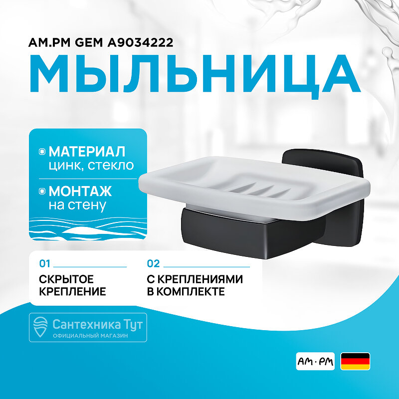 СохранитьСтеклянная мыльница AM.PM A9034222 Gem с настенным держателем черная интересное: