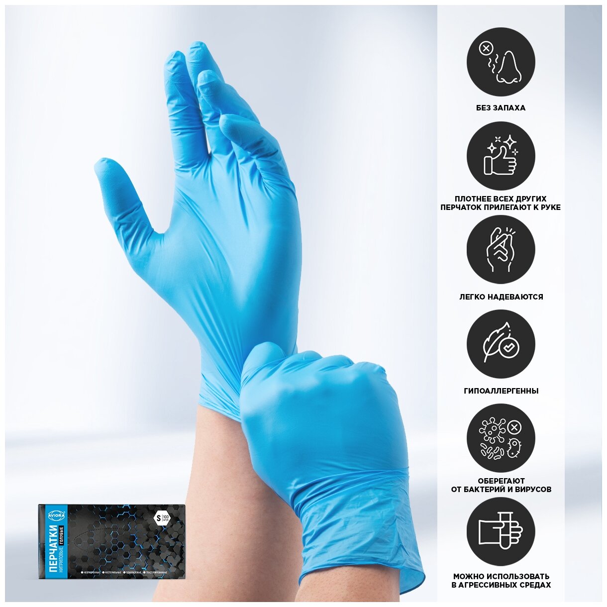 Aviora Перчатки нитриловые, размер S, 100 шт. в уп.