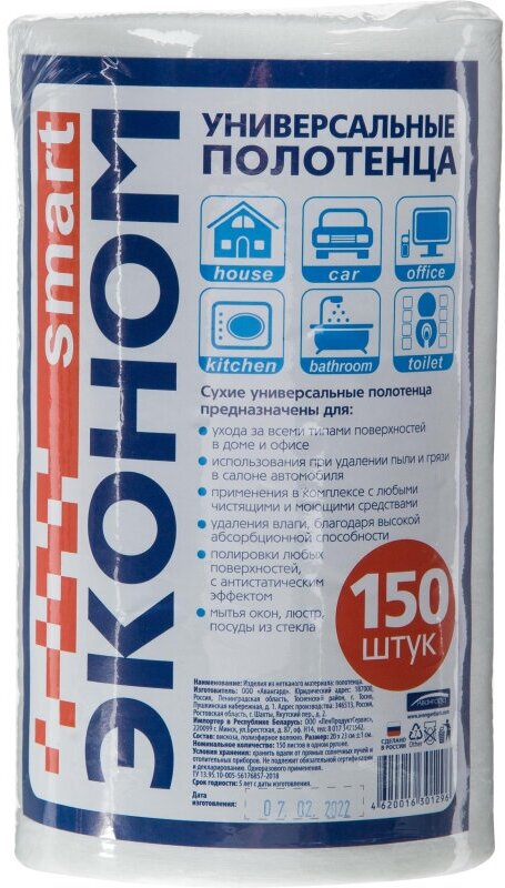 Полотенце универсальное 23х20 см Эконом smart в рулоне (150 шт.)