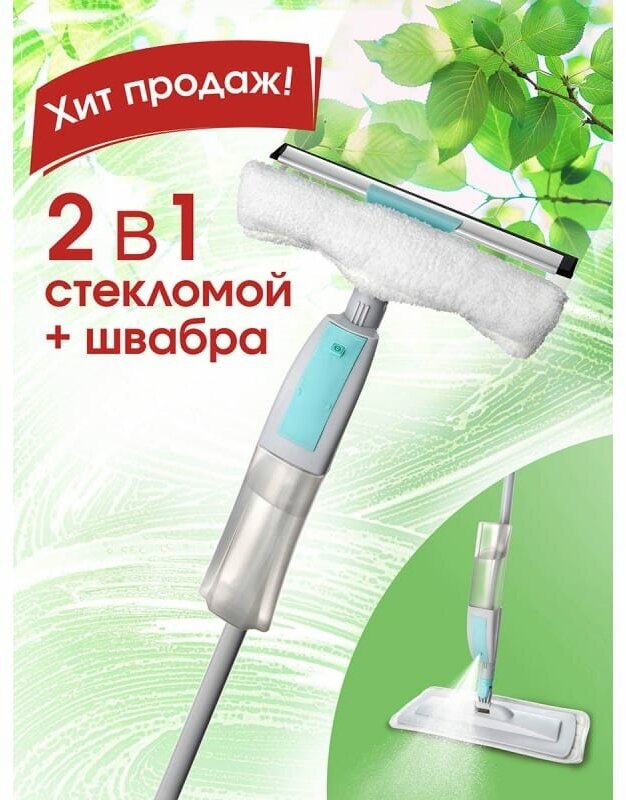 Home Queen You`ll love Швабра-спрей с насадкой из микрофибры + насадка стеклоочиститель