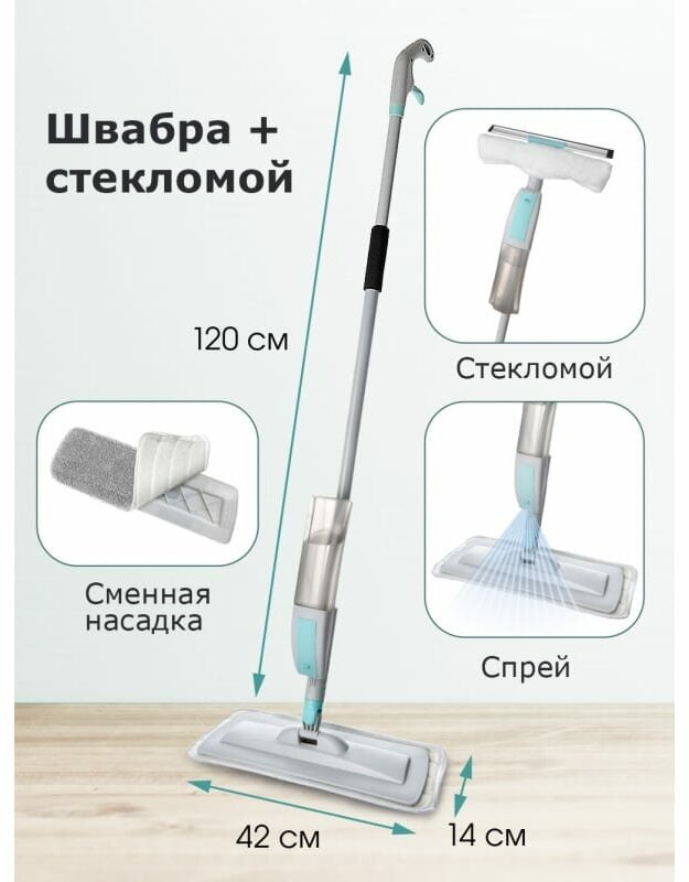 Купить Швабра для пола со спреем Home Queen You'll love с насадкой из микрофибры+стеклоочиститель