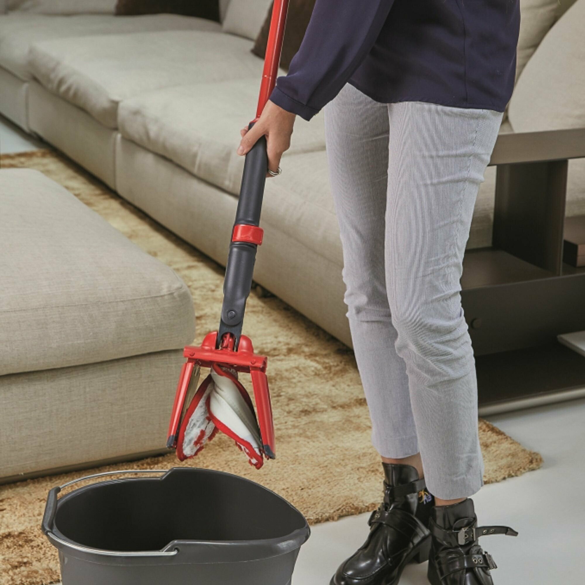 Сразу надо купить овальное ведро, в обычном промыть невозможно. И запасную насадку. И то и другое существенные дополнительные расходы в сумме превыщающие стоимость швабры. Но оно того стоит.