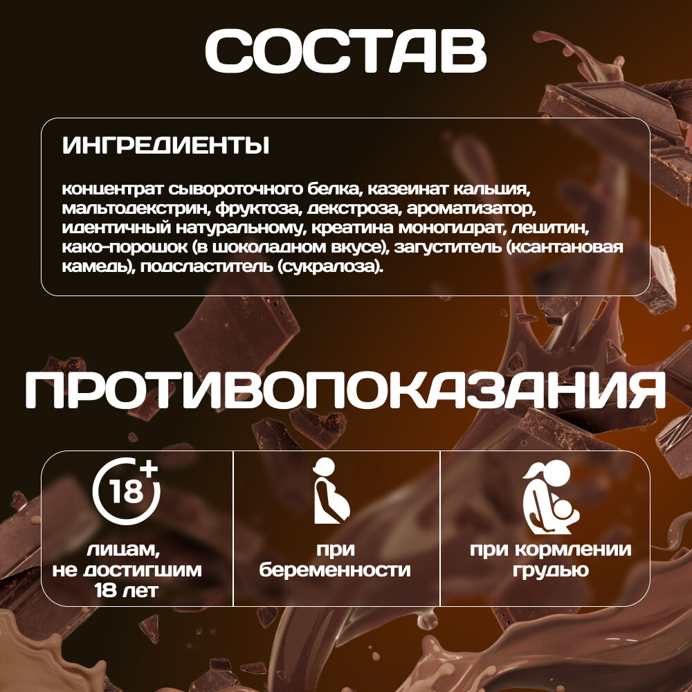 | Плюсы: | Большой объем, приятный на вкус, плюс креатин |