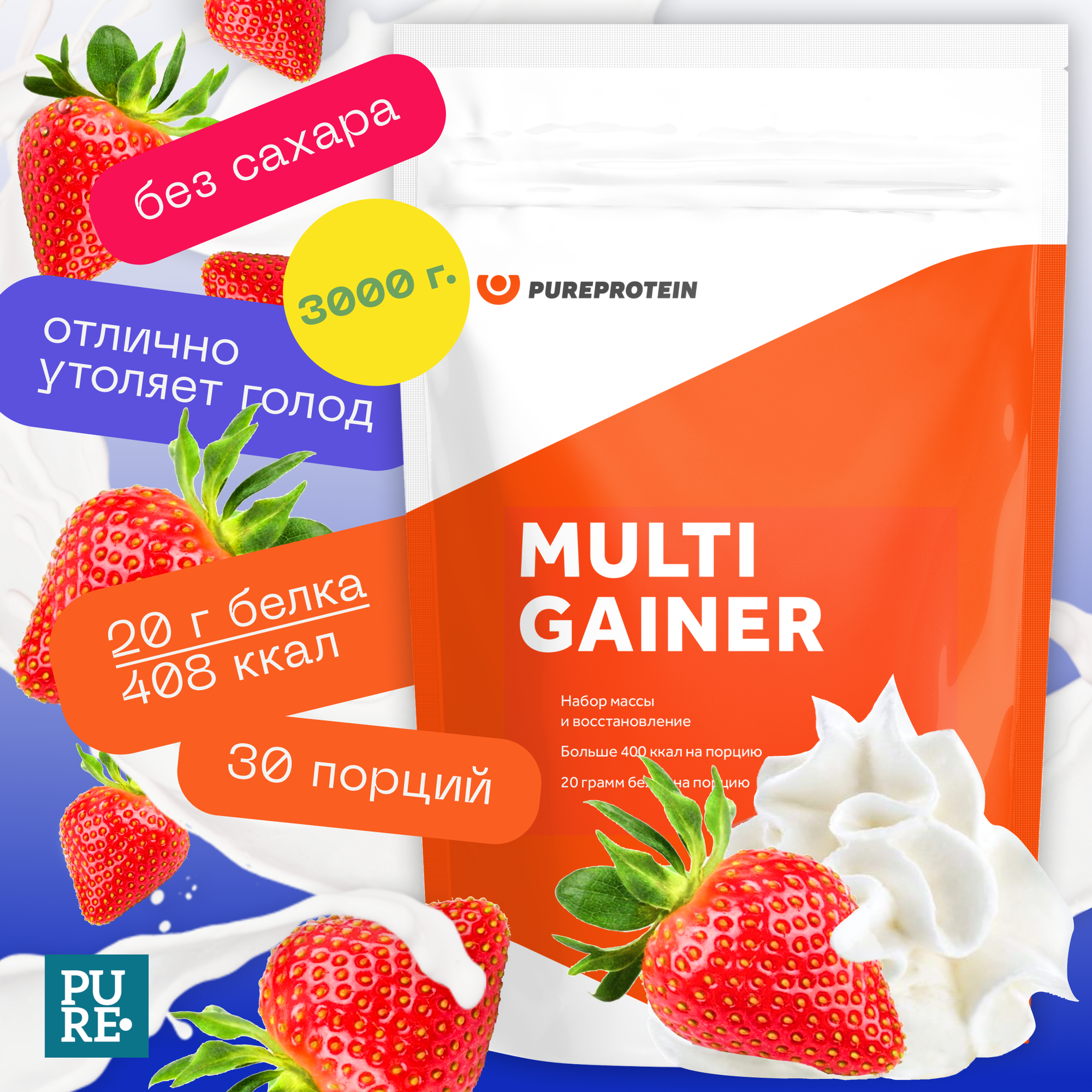 Купить Гейнер Pureprotein Pure Protein Multi Gainer - Клубника со сливками 3000 г