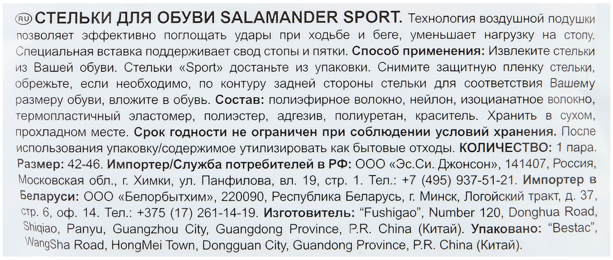 Стельки гелевые для обуви Salamander Sport, размер 42-46 интересное: