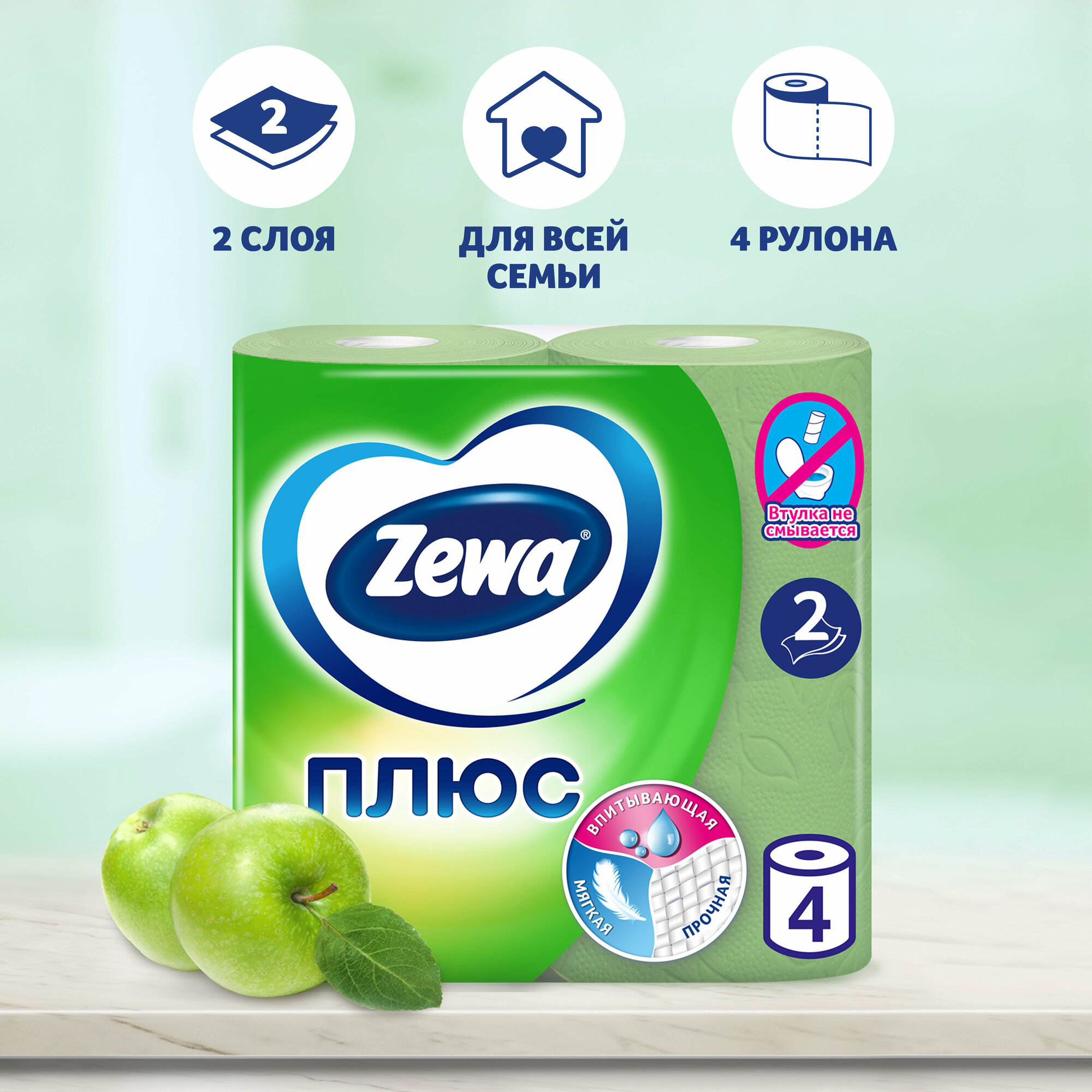 Туалетная бумага Zewa Плюс Яблоко, 2 слоя, 4 рулона