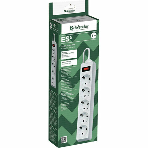 Сетевой фильтр DEFENDER ES 5 (5 м, белый, 5 розеток)