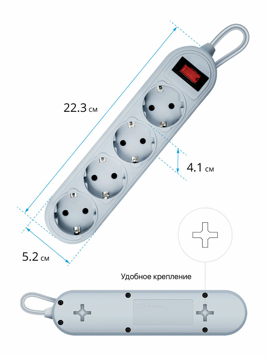 | Плюсы: | Недорогой удлинитель. Много лет пару больших Дефендеров использую дома. Посмотрим,как этот будет работать. На коробке написано, что силовой кабель и контакты розеток выполнены из чистой меди) |