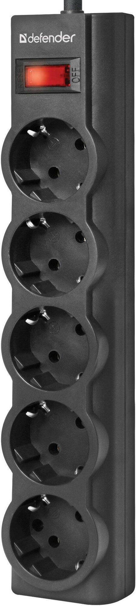 Сетевой фильтр Defender ES, 5.0м, 5 розеток, с выключателем, цвет: чёрный