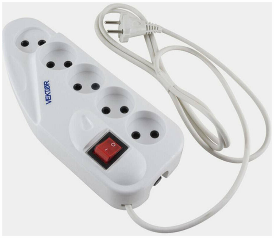 Сетевой фильтр VEKTOR Lite, 5 розеток, 5 м, б/з, 10А белый