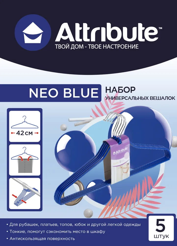 Набор вешалок универсальных NEO BLUE 42см 5шт ATTRIBUTE HANGER