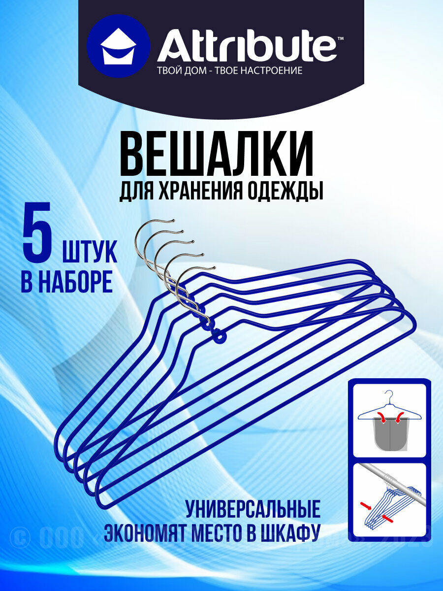 СохранитьНабор вешалок универсальных Attribute Neo Blue , нескользящие 5шт - Атрибут вашего дома интересное: