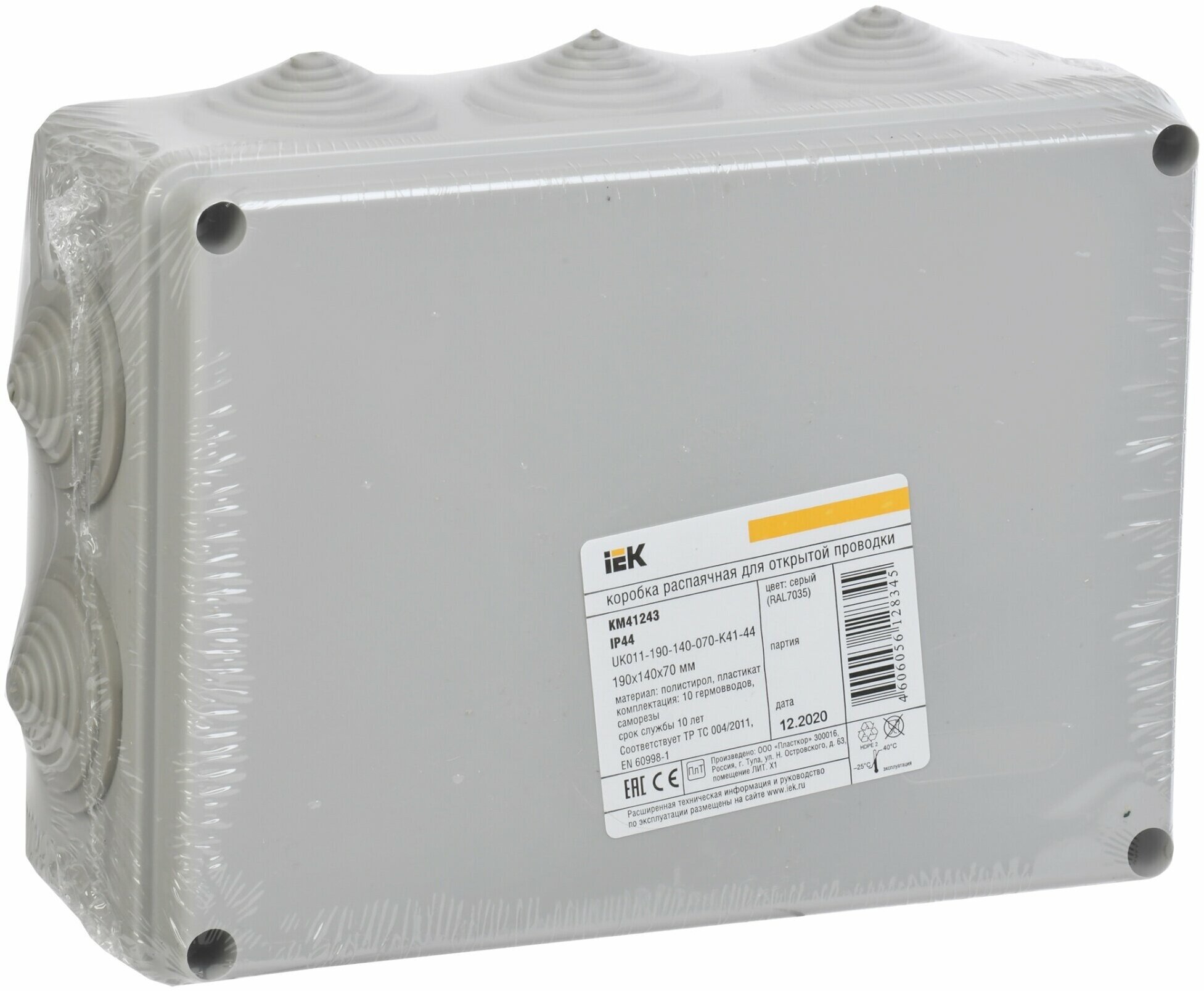 UKO11-190-140-070-K41-44 Коробка распаячная IEK КМ41243 190х140х70 мм IP44 RAL 7035, 10 гермовводов