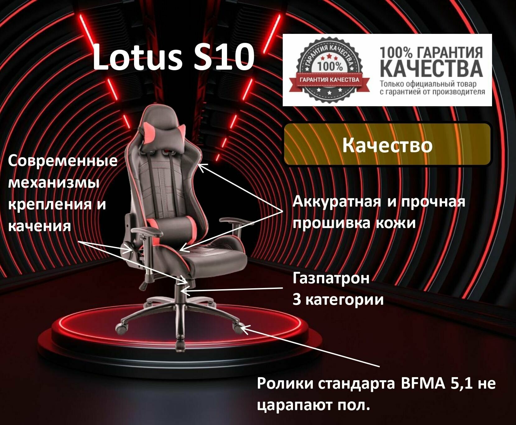 Игровое кресло для геймеров Everprof Lotus S10 обивка: искусственная кожа, цвет: красный