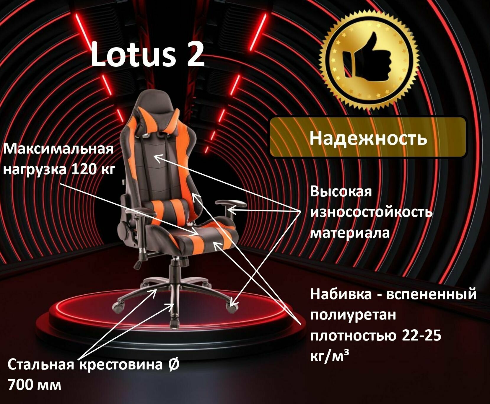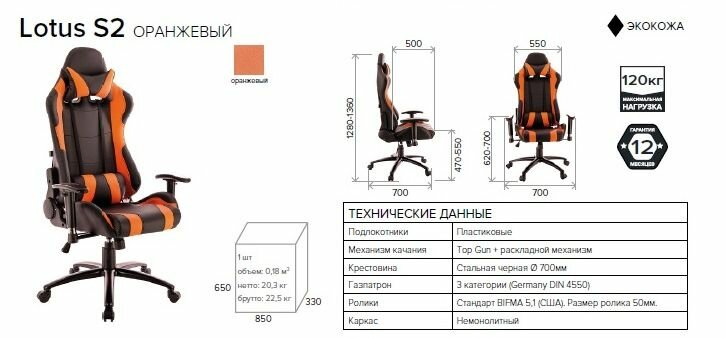 Игровое кресло для геймеров Everprof Lotus S2 обивка: искусственная кожа, цвет: оранжевый