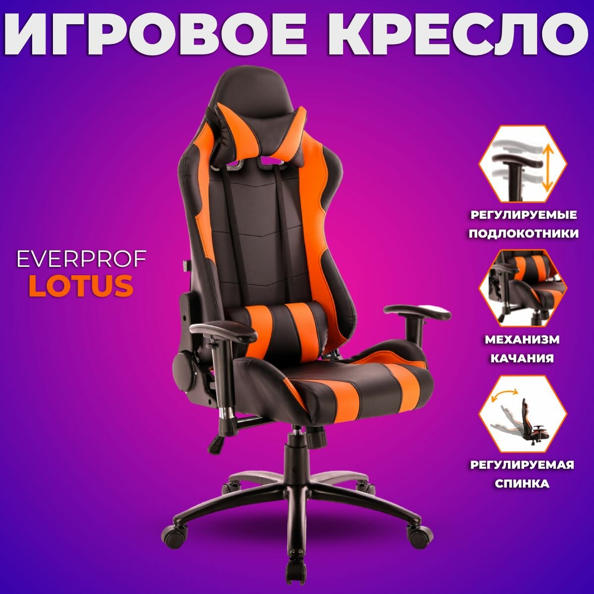 Купить Кресло игровое Everprof Lotus S2 black/orange