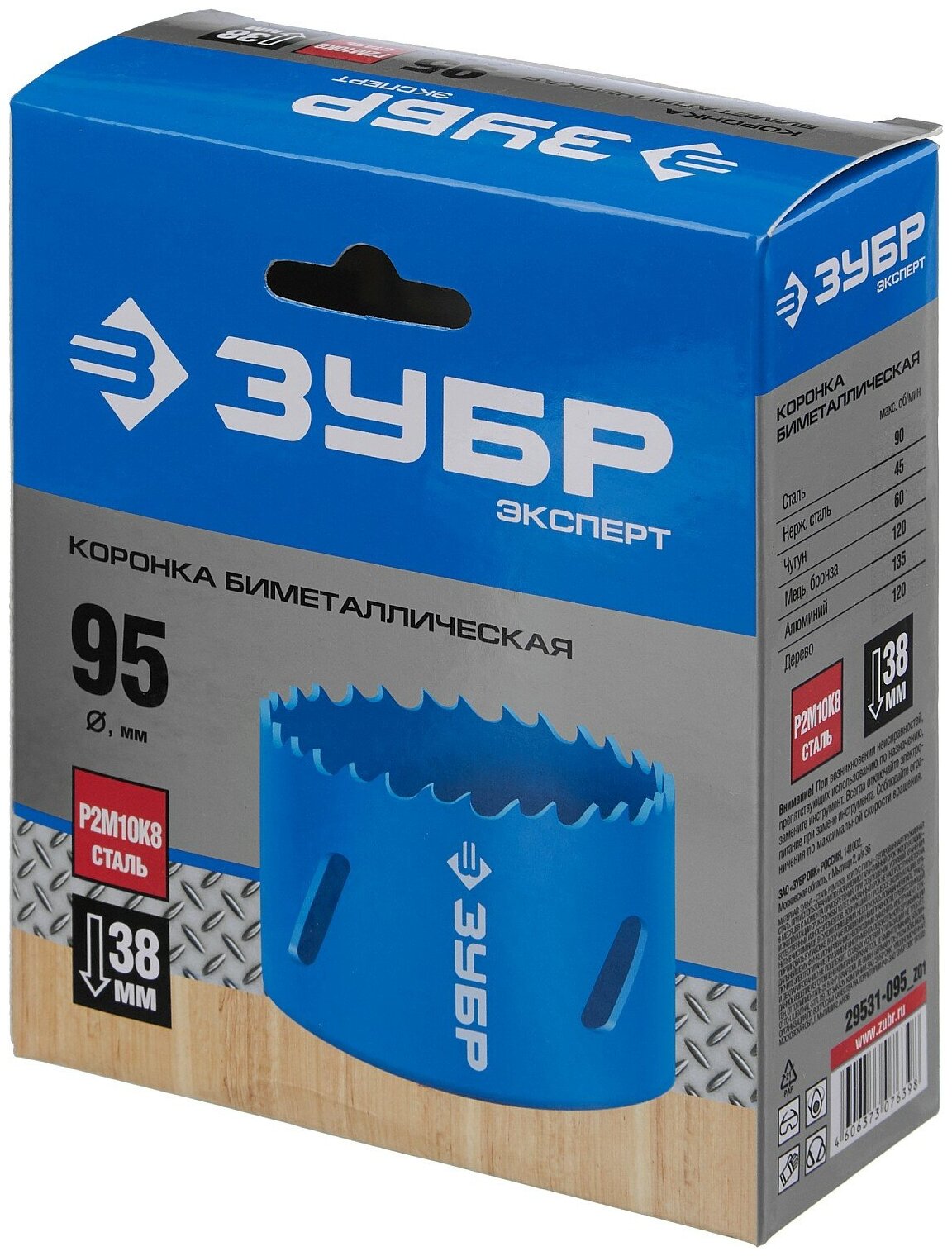 ЗУБР 95мм, коронка биметаллическая, быстрорежущая сталь, 29531-095