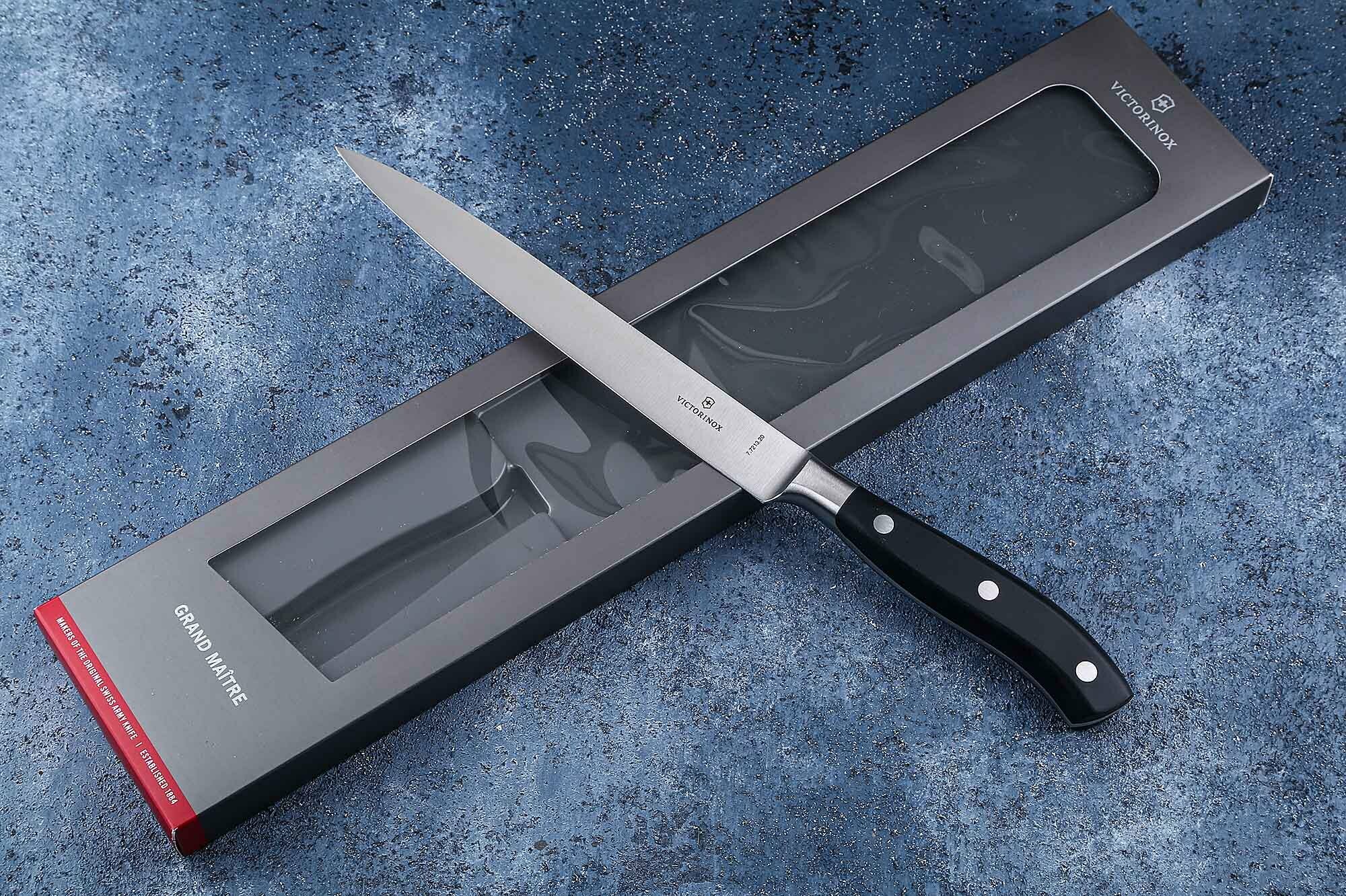 Купить Нож филейный VICTORINOX Grand Maitre, кованый, лезвие из нержавеющей стали 20 см, черный. 7.7213.20G