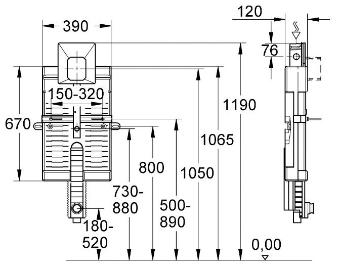 Комплект инсталляции OLI 80 Sanitarblock ECO (0500*1090*0140), мет. крепл., механика (886914)