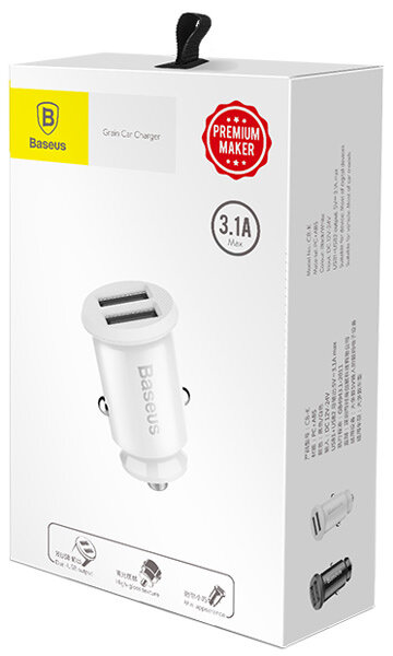 CCALL-ML02 / Автомобильное ЗУ Baseus Grain белый [мощность - 15 Вт, 3.1 А, до 5 В, без кабеля]