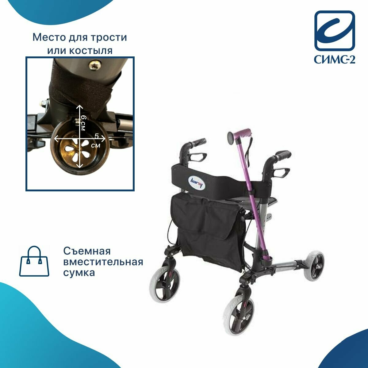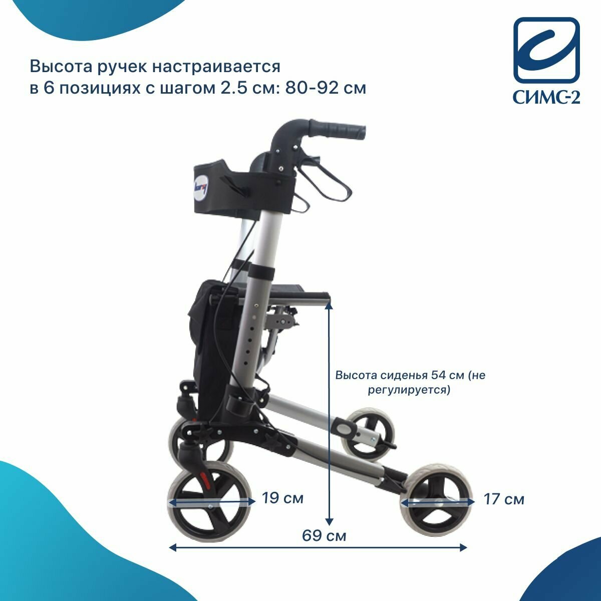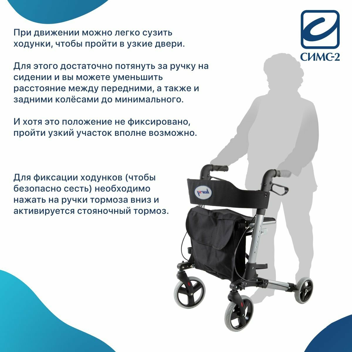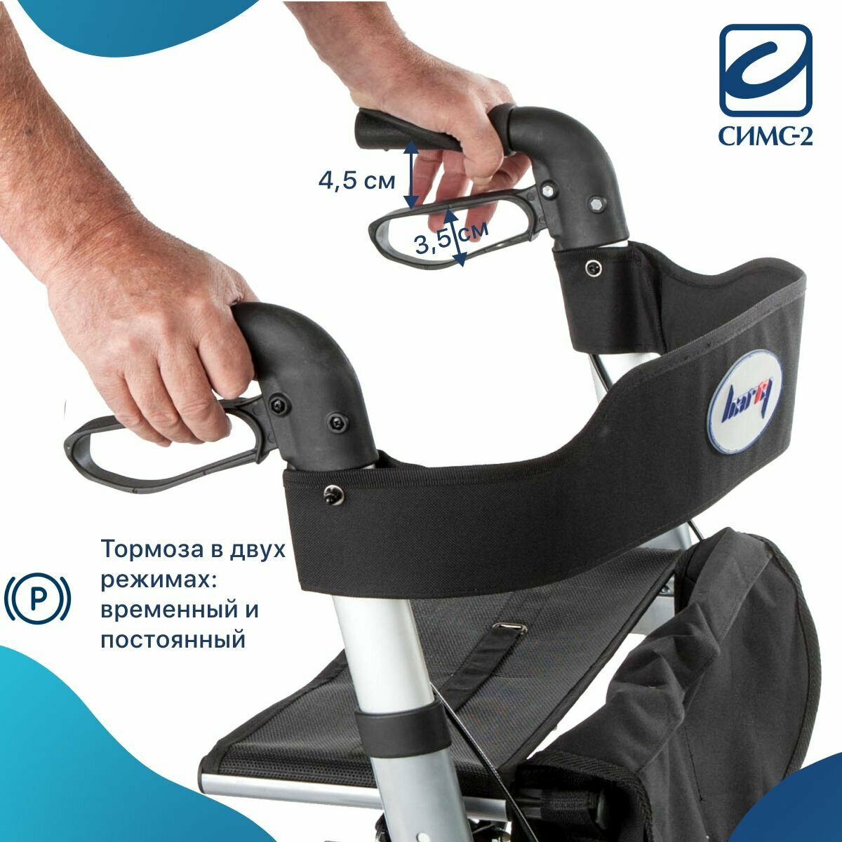 Ходунки Barry Smart на колесах, с сумкой сиденьем и опорой под спину.