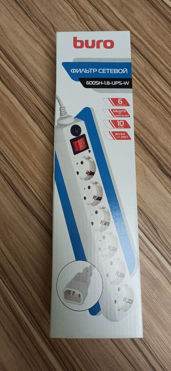 Сетевой фильтр BURO 600SH-1.8-UPS-W розетка ИБП белый, 6гн, 1,8м, выключатель