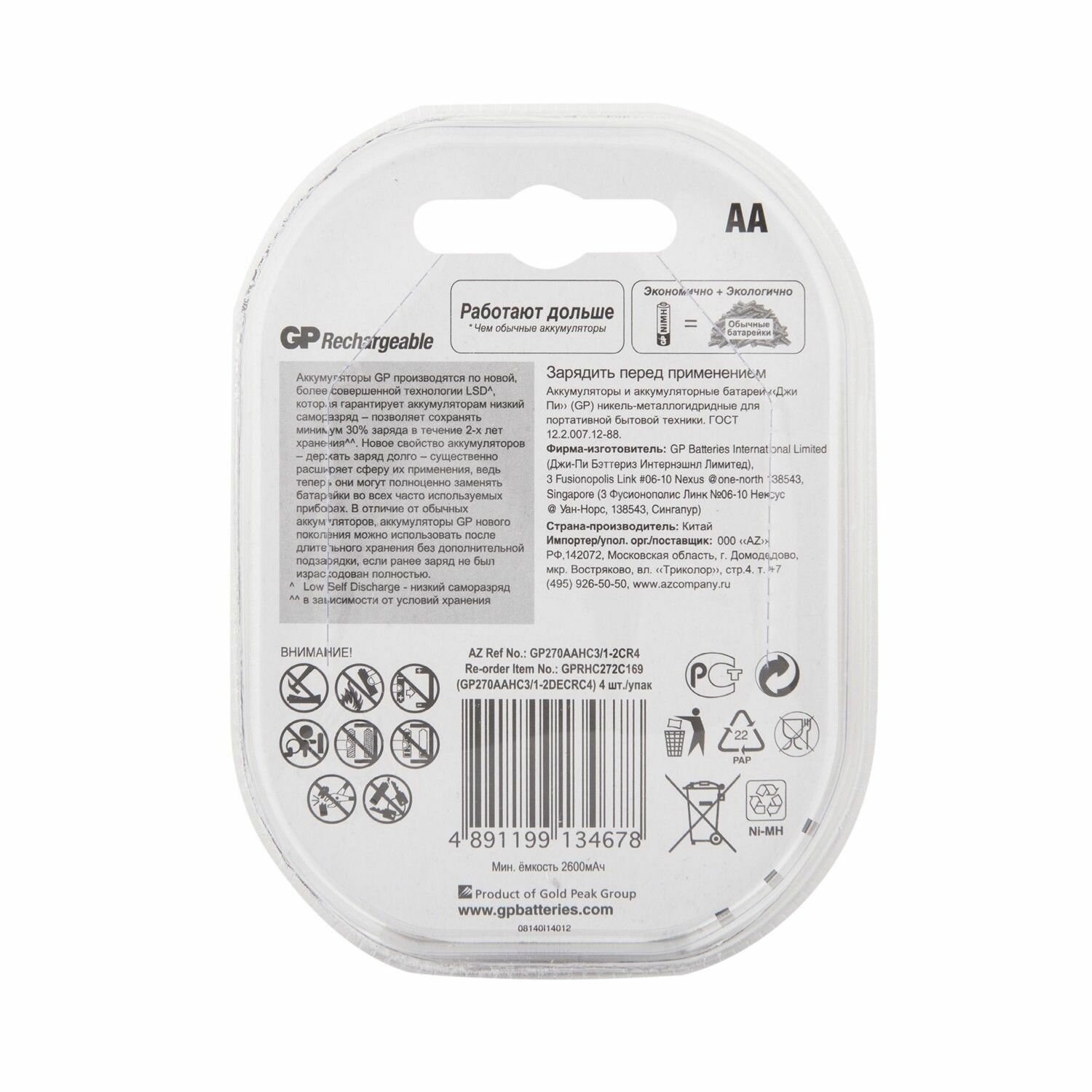 Перезаряжаемые аккумуляторы GP 270AAHC AA, емкость 2650 мАч - 4 шт. в промо-упаковке 3+1
