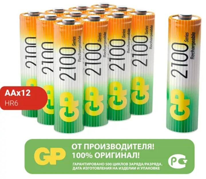 GP акк. Бат. аа пальчиковые hr6 2100 mah/мач, никель-металлгидрид ni-mh 12 штук в уп 210AAHC-B12