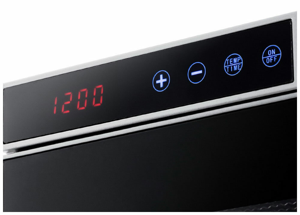 | Плюсы: | Очень хорошее качество и вместимость сушилки. Быстро засушивает фрукты и овощи (и не только). Идеально подходит для сушки пастилы и мяса. Имеется 30 поддонов, трёх разных видов. Сушит эффективно, проверяли на персиках , они сложны для сушки из-за наличия большого количества влаги. Так же пробовали сушить мясо, потратили 7 часов и довольны результатом. Очень приятно, что имеется наличие стекла в дверце, благодаря ей, хорошо видно состояние продукта. Подойдет для кухни, если есть место, прибор достаточно габаритен. Но габариты соответствуют вместимости сушилки. Имеется очень удобная сенсорная панель управления, с таймером до 24 часов и регулировкой температуры от 35 до 75 градусов. |