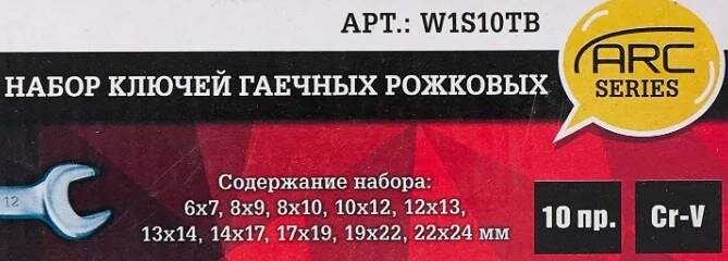 Набор ключей гаечных рожковых серии ARC в сумке, 6-24 мм, 10 предметов W1S10TB