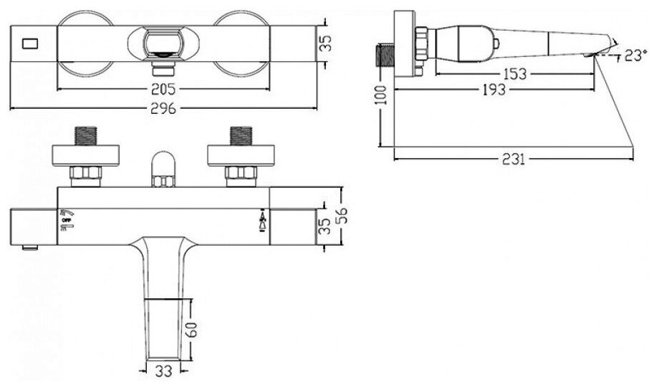 Смеситель для ванны термостат IDDIS UNISB02i74WA "Uniterm" без душ. аксессуаров хром