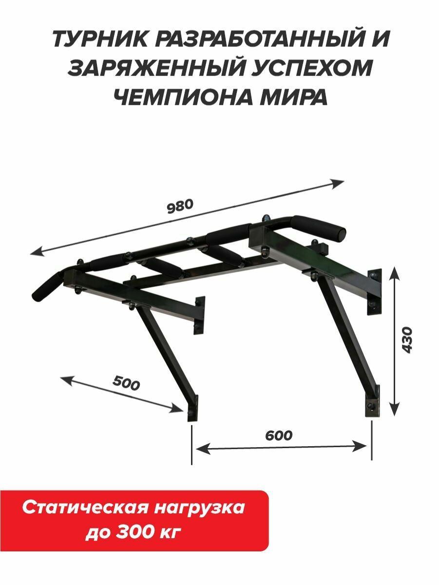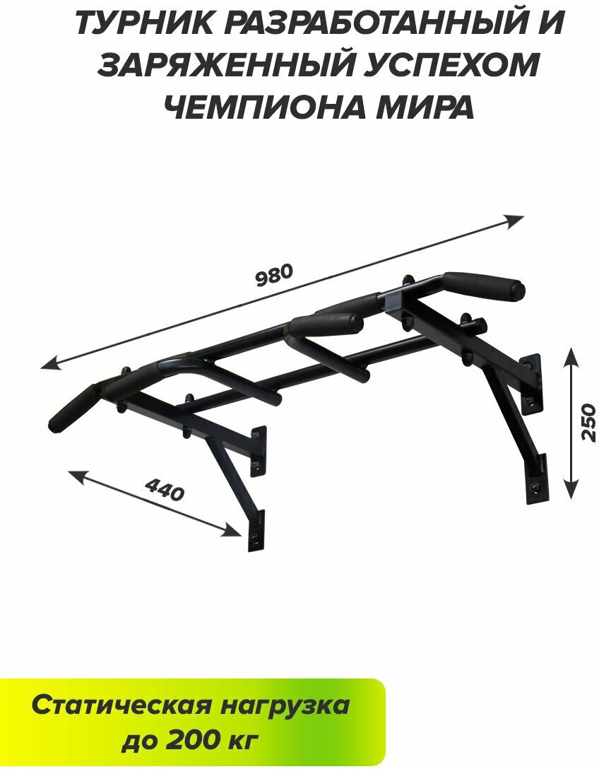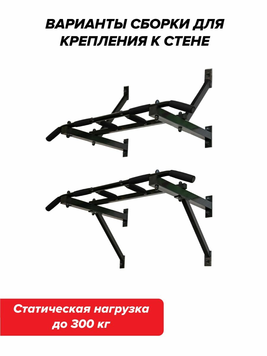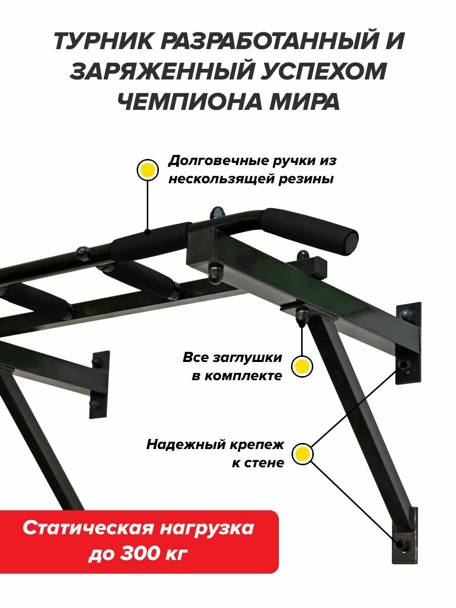 Турник настенный 3 в 1 брусья пресс тренажер для спорта дома, усиленный, нагрузка 300кг Триумф черный (с неопреновыми ручками)