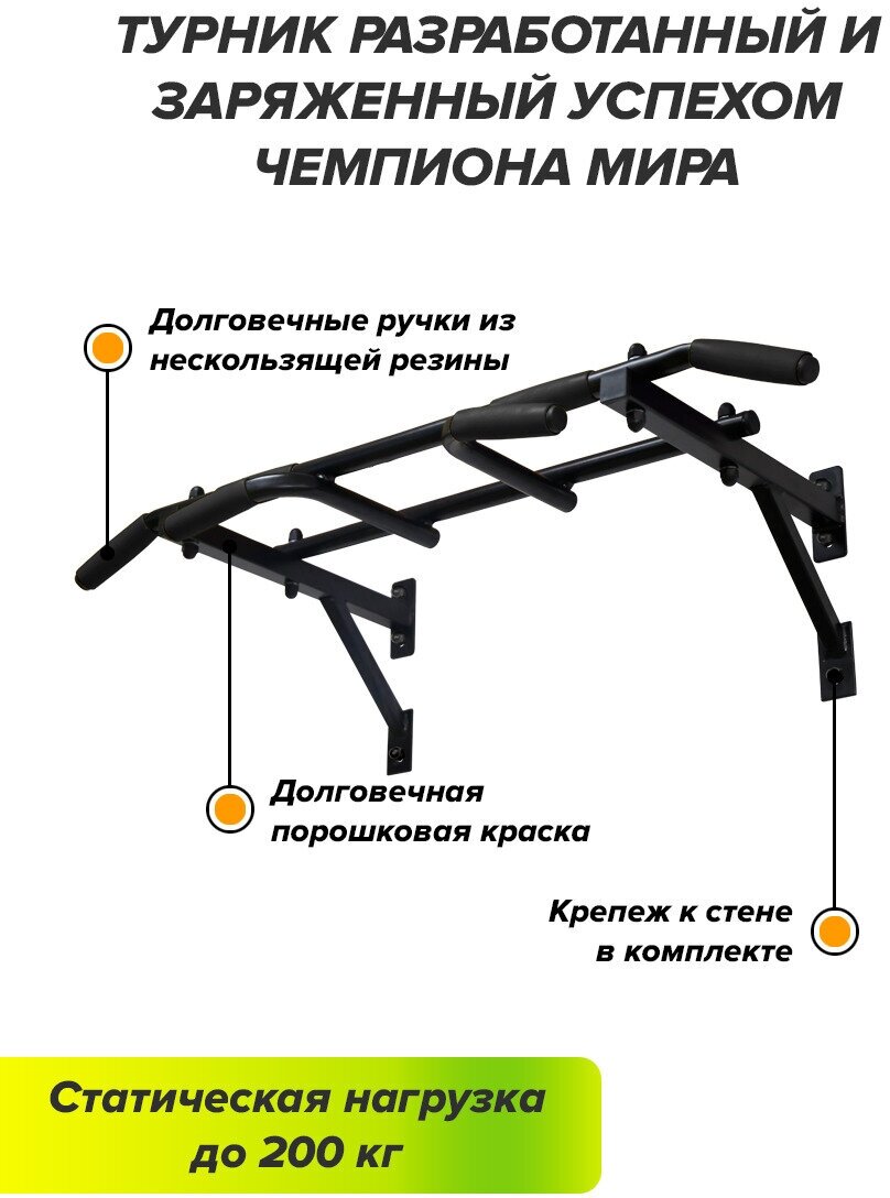 Турник настенный треххватный (черный с желтыми). 3 хвата для подтягивания Absolute Champion. Турник на стену треххватный. Турник для дома усиленный. Турник разборный. Турник настенный 3 в 1. Турник треххватный